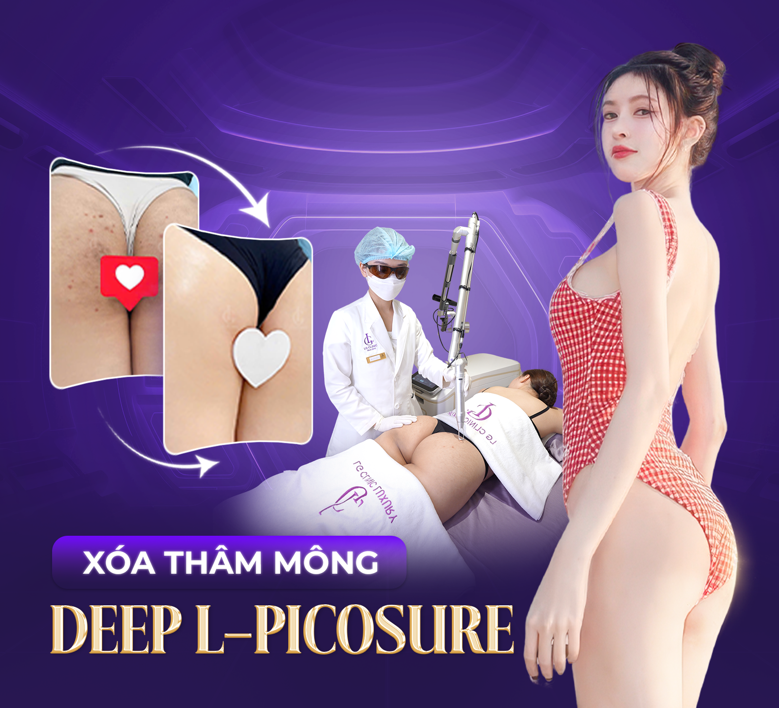 Đây là địa chỉ đã có 10 năm kinh nghiệm trong ngành làm đẹp, đặc biệt là dịch vụ trị thâm mông. LG Clinic việc ứng dụng độc quyền công nghệ Deep L-Picosure – một bước tiến đột phá trong việc trị thâm vòng 3. Không chỉ đơn thuần là xóa thâm, phương pháp này còn mang lại hiệu quả toàn diện: